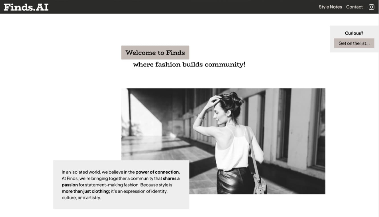 Basic brochure site for a new AI startup that aims to “discover a better digital shopping experience with NO generic search results.”